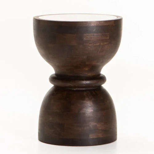 The Bottocino Marble and Solid Mango Wood Side Table is a luxurious blend of natural elegance and artisanal craftsmanship. Featuring a Botticino marble top and a hand-carved solid mango wood base, this piece exudes timeless sophistication. The sculptural silhouette and rich wood grain add warmth and character, making it a striking accent for any living space. Handcrafted in India, it showcases expert detailing and a refined aesthetic.